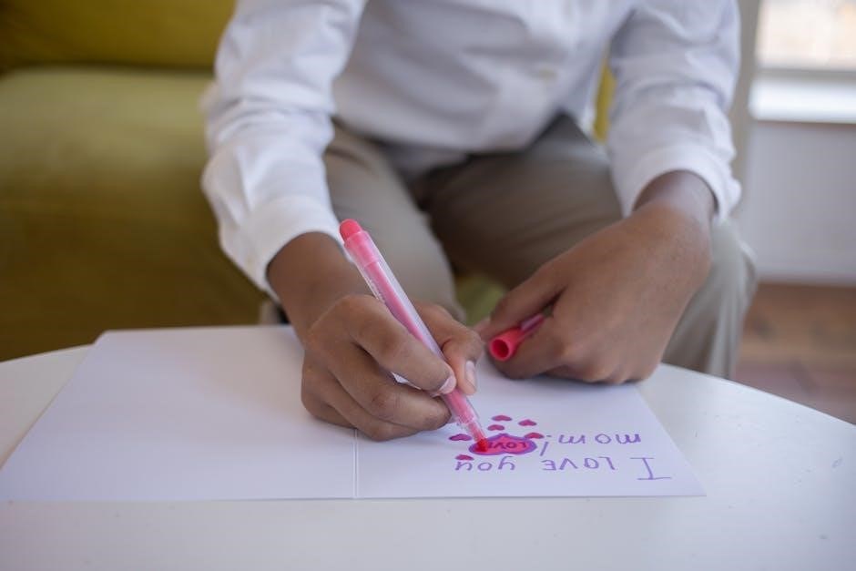 Engage kids in creating heartfelt Mother’s Day cards with simple‚ fun activities that foster creativity and personalization‚ making it a memorable experience for both kids and moms.