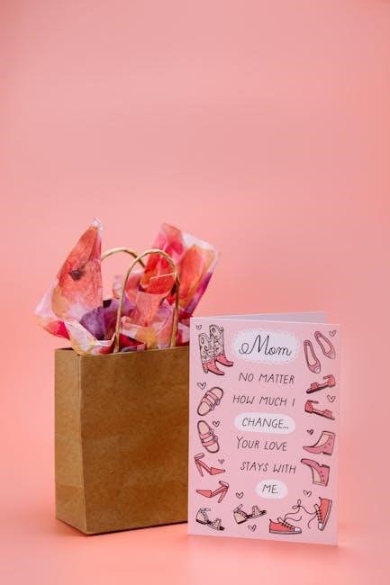 Printing your Mother’s Day card involves using a printer‚ cardstock‚ and high-quality settings. Ensure the PDF fits the paper size and adjust margins for a perfect finish.